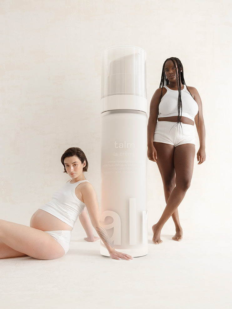 Sa formule, composée d’acide hyaluronique à haut et bas poids moléculaire, d’huile d'abricot bio et d’eau de bleuet bio anti-oxydante, est compatible dès le 1er jour de la grossesse, pendant l’allaitement et bien après. La Crème talm est un soin hydratant multi-fonctions unique dont vous ne pourrez bientôt plus vous passer.