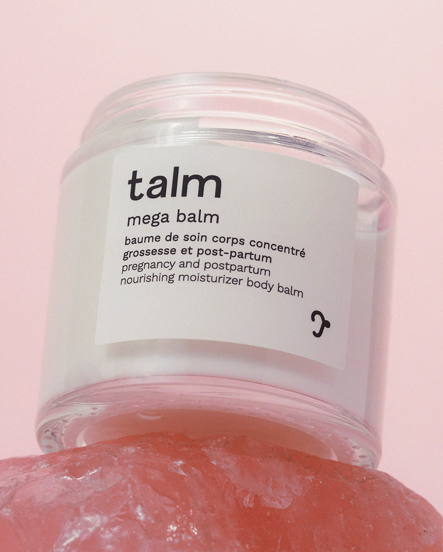 Le Mega Balm est un soin hydratant et performant qui s’applique sur le corps dès le premier jour de la grossesse, durant le post-partum et est compatible allaitement.