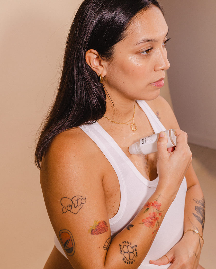 On peut également l’emmener partout avec soi grâce à son petit format et son applicateur bille (pratique en réunion ou en week-end quand on ne peut pas voyager avec sa routine de soins complète!).
