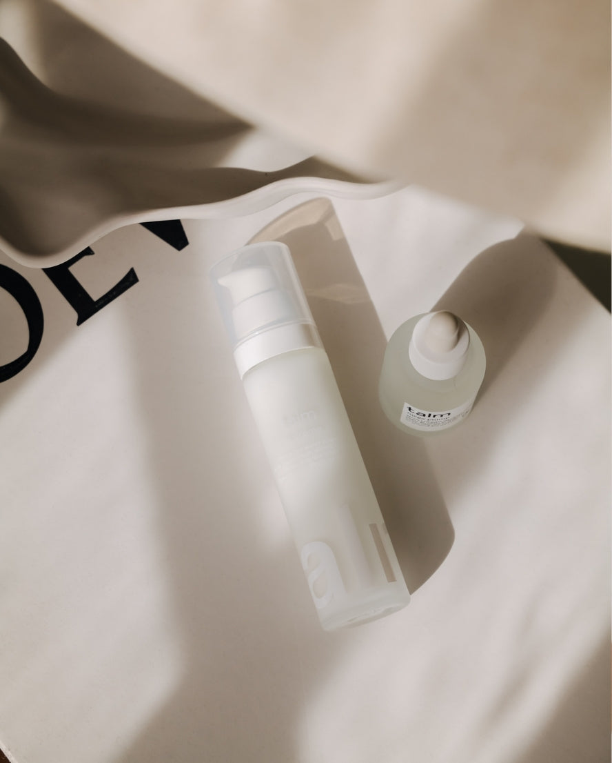 Follow by applying two drops of the serum, massaging gently to help the product penetrate the skin.