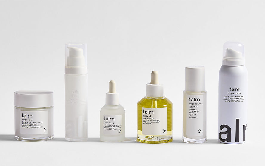 In the talm collection pouch, we brings together our 6 essentials for pregnancy and the post-partum period.